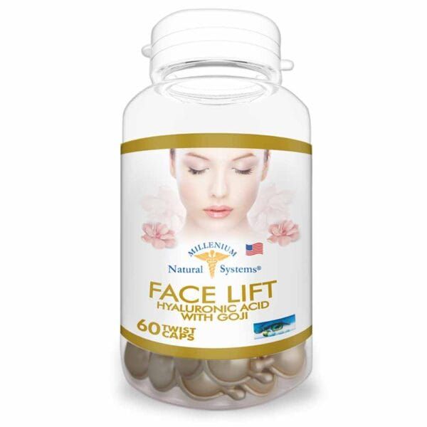 Mantén tu piel hidratada, firme y radiante con Face Lift Hyaluronic Acid x 60 Twist Caps.