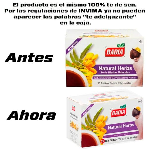 El producto es el mismo 100% te de sen. Por las regulaciones de INVIMA ya no pueden aparecer las palabras «te adelgazante» en la caja